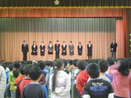 今日は、白百合女子大の学生が自己紹介をしてくれました。みんなと仲良く遊んだり勉強したりします。