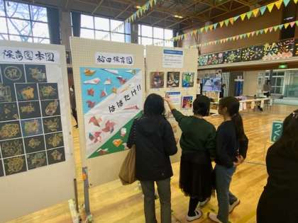 展覧会2日目です。今日は、保護者鑑賞日であり、今回から新たに親子鑑賞を取り入れました。親子で作品を通じて会話が弾んでいる様子がよく見られました。多くの保護者の皆様にご来校いただき感謝申し上げます。