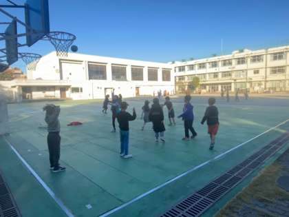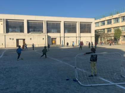 今日もいいお天気です。朝遊びには、サッカーが人気です。ミニゴールの出し入れのときに、サポーターの方を手伝う子どもたちがいるということが嬉しいです。低学年と高学年で上手に分かれて遊べています。