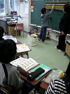 そろばんで数を表すだけでなく、指の使い方も習います。