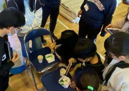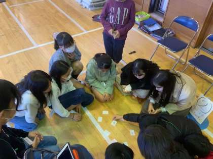 ?総合的な学習の時間で留学生をお招きして、子どもたちは、日本の文化や遊び、家屋など調べたことを伝えたり、実際に一緒にやってみたりしています。