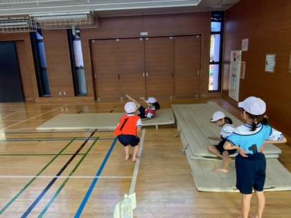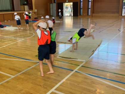 昨日の校内研究会の続きの授業です。今日は、からっぴからラインが届いた設定で、もっと難しい技にも挑戦してみたいとの内容に、子どもたちは俄然やる気を出して、いろいろな体の動かし方を考えて取り組んでいます。