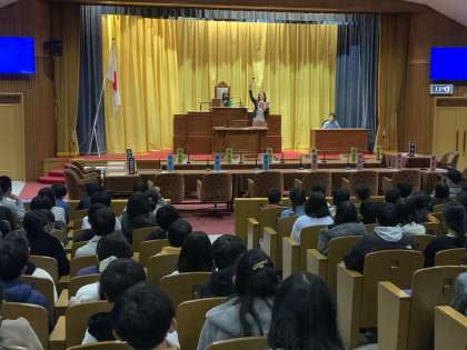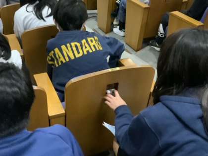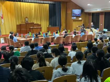 参議院の別館で、参議院特別体験プログラムに3校が参加しました。委員長や衆議院議員、委員などのそれぞれの役が出て、法案を審議します。皆も議員として賛成か反対のボタンを押して意思表明をします。
