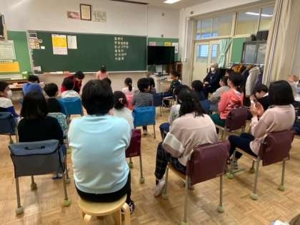 冬休みにどのように過ごしたのかを皆の前で一人ずつ発表していきます。その後に聞いていた子どもたちから質問があり、答えていきます。車でお出かけをした発表もありました。