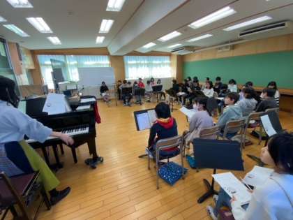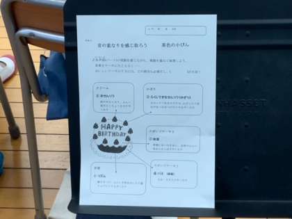 音楽「音の重なりを感じ取ろう」の題材で「茶色の小びん」に取り組んでいます。各パートの役割を感じながら、楽器を重ねて演奏していきます。主旋律の練習をしています。