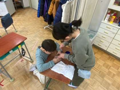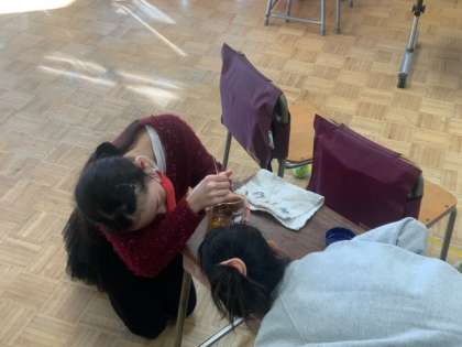 理科「もののとけ方」で、100mLの水に砂糖がどれくらいまで溶けるかの予想を立てて実験をしています。