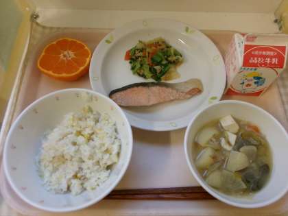 ☆今日の給食は、昔の給食をイメージをして作っています。特に雑穀ごはんには、麦、ひえ、あわが入っていて、栄養価の高い物になっています。