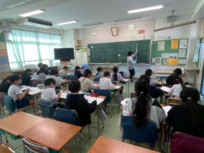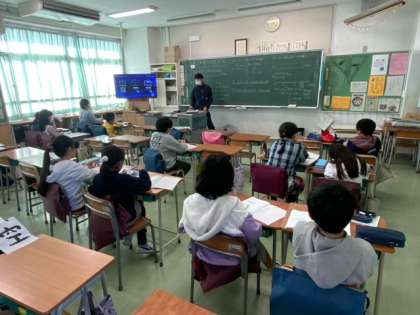 少人数算数で、小数で何倍か表し方を学んでいます。筆算の計算の仕方も復習しました。