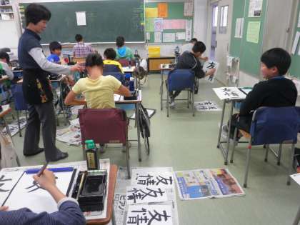 2の2は道徳の授業をしていました。先生の問いにみんな真剣に手を挙げて発言をしています。6の1は、習字の時間でした。みんな姿勢よく字を書いている姿が印象的でした。つくし学級は、音楽の時間です。「校歌」をみんなで元気よく歌っていました。
