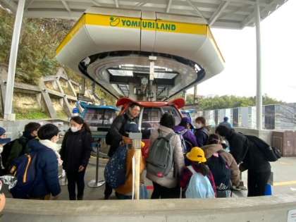 ゴンドラに乗ってよみうりランドに到着しました。グッジョバで、カップ焼きそば、キャンパスノートデコレーション、UVレジン・キーホルダー作りの3つコースに分かれて遊びます。