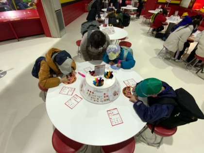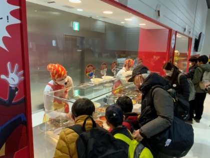 カップ焼きそば作りでは、フタに絵などをかいて、好きな具材を五つ選び、パッケージしてできあがりです。