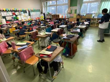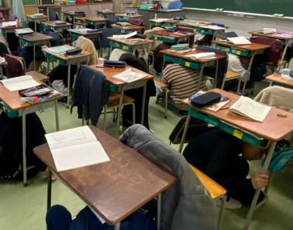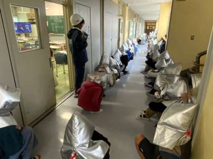 予告なしの地震を想定しての避難訓練がありました。今日は、廊下までの避難でしたが、どのクラスも落ち着いて真剣に取り組めていました。この後の講話では、命を守る行動についてお話しをしました。その場に応じた避難ができるように考えるきっかけとしました。