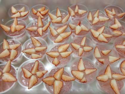 ☆今日は、6年生はお楽しみ給食でした。調理員さんたちが朝早くから給食を作っています。特にゼリーは、カルピスゼリーといちごゼリーの2層にして、上にいちごを飾っています。思い出の給食になっていただけると嬉しいです。