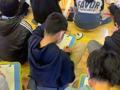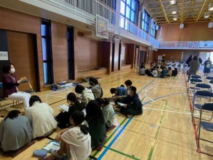 総合的な学習の時間「未来に向かって」のキャリア教育で、ゲストティーチャーとして弁護士や照明デザイナー、保育士、野球選手、警察官、看護士の皆様をお招きし、働くことや仕事についての話しを聞いて考えを深めていきます。