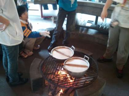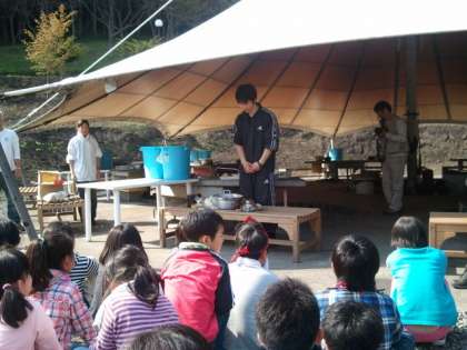 まず、作り方の説明を聞いてから、みんなで協力して作業に取りかかります。