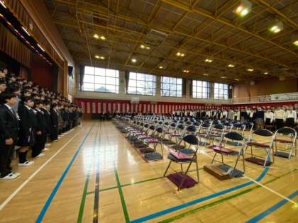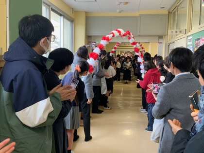創立150周年記念、第148回の卒業式です。来賓の方々をお迎えし、呼びかけや合奏、合唱のある盛大な卒業式でした。小雨が降っていましたので、廊下を通って卒業生を送り出しました。とてもいい式となりました。
