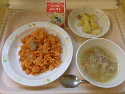 *今日から1学期の給食がスタートしました。みんなが好きで、食べやすい献立になっています。今年度も給食室では、美味しく、安全な給食を提供していきたいと思います。