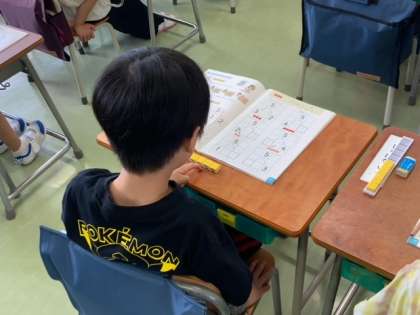 算数で、5は、いくつといくつでできているか、算数ブロックも使って学んでいきます。