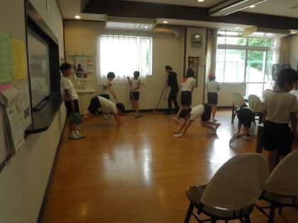 運動会が近づいていて、どの学年も練習に熱がはいっています。それでも、掃除の時間になると、みんな一生懸命に掃除に取り組んでいます。