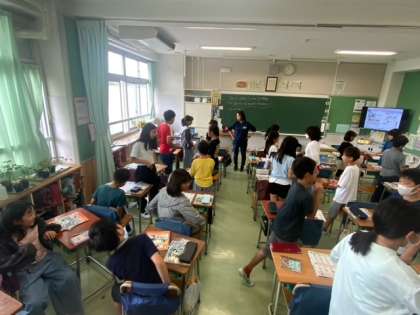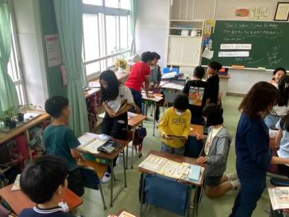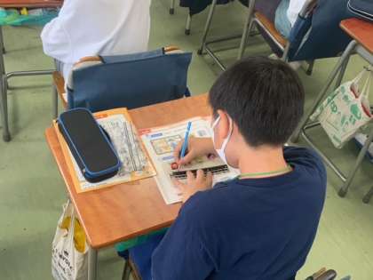外国語で、友達と誕生日を尋ね合えることをめあてに取り組んでいきます。まずはデジタル教科書からの発音をよく聴いて発音をしています。日付がなかなか難しいです。