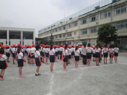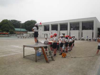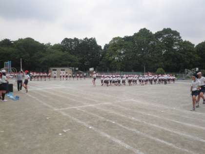 準備運動は運動委員会が中心となってやっています。高学年が積極的に動いて、全体練習が進んでいます。