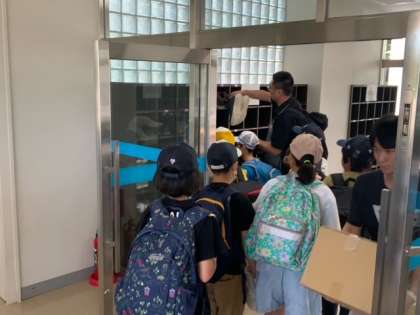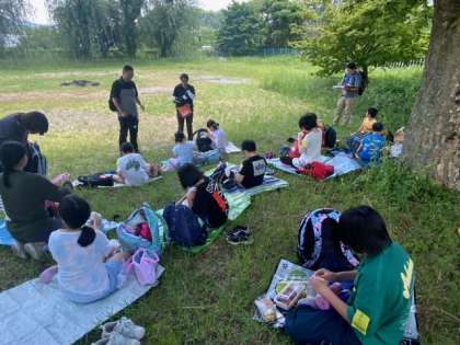 宿舎に到着しました。荷物を運び入れて、トイレを済ませてお昼ご飯です。外で食べるお弁当はとても美味しいです。