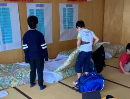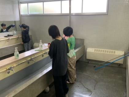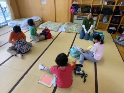 朝の支度を始めました。熱を測って着替えをして、布団を端に寄せて顔を洗います。