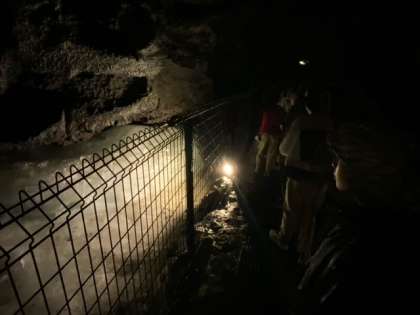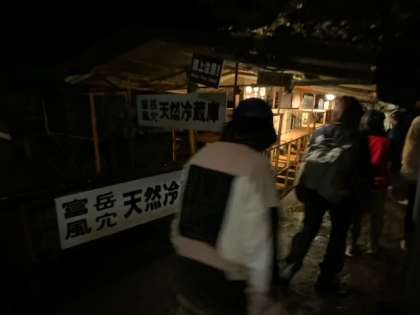 野鳥の森公園コースと紅葉台コースに分かれてハイキングです。曇っていますが、歩くにはとても快適です。風穴は入口少し降りただけでとても寒いです。