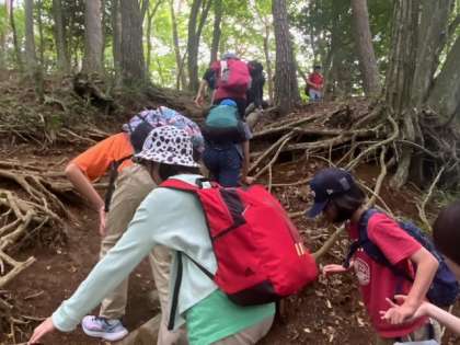 紅葉台コースです。登山を頑張っています。途中とても綺麗な富士山が見えました。