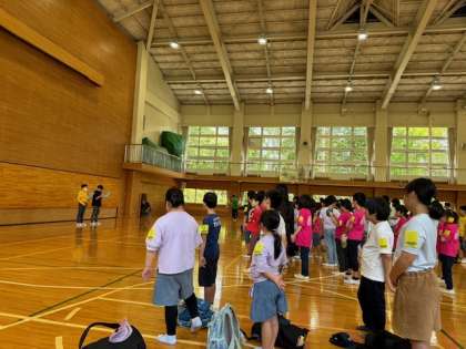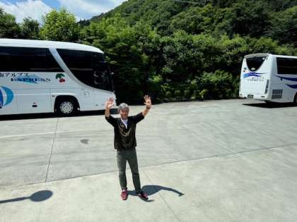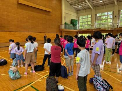 閉園式です。お世話になった宿舎の方にお礼も伝えました。子どもたちは、宿舎でお会いした時には、元気よくあいさつができていました。観光バスで恩師林庭園に向けて出発しました。
