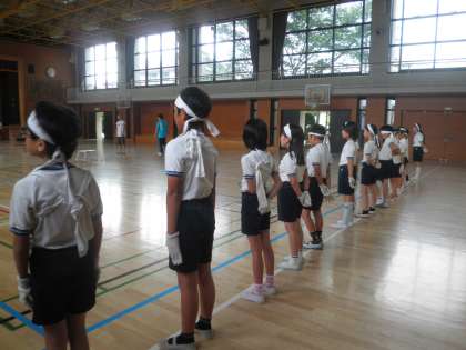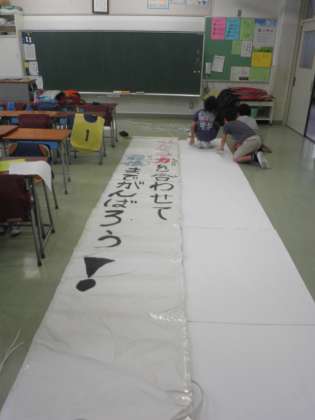 今日は運動会係活動です。4年生は応援団と代表委員、5,6年生は全員が運動会の係として活動しています。