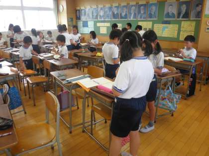 3年生の音楽の授業を見ました。リコーダー(たて笛)を始めたばかりで、今は、シ、ラ、ソの音を出す練習をしています。