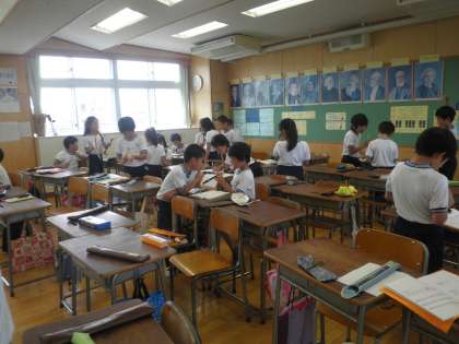 授業の始めは音階を読む練習で、ソの音のときは手拍子、シの音のときは立つなど、楽しく音階を読んでいました。後半は、自分で練習して友達に聞いてもらったり、先生に聞いてもらったりしていました。