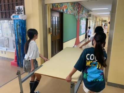 6年生が1時間目の前の時間を使って、倉庫にあるパネルなどを体育館の倉庫へ移す作業を手伝いました。夏休みに様々な工事が入りますが、その準備として6年生が手伝いがとても助かりました。6年生は、学校のためにと、嬉々として取り組んでいます。
