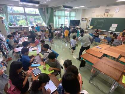 子どもたちは、スペシャルからっぴを探すことも楽しみにしています。廊下を歩いて移動も気を付けられています。前半と後半に分かれていて、お店をする人とお客さんが交代します。
