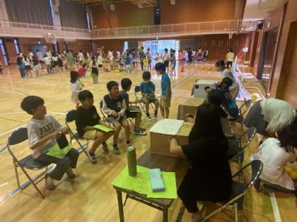 体育館は、6年生が出店しています。お笑いライブもありました。