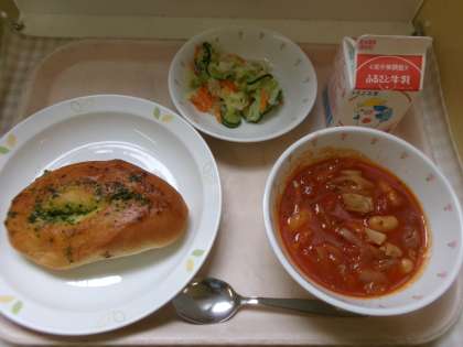 ☆今日は2024年のオリンピック&パラリンピック競技大会の開催地である、フランス(パリ)の料理カスレを作りました。カスレはフランスの伝統的な郷土料理です。作り方は町ごとに違いますが、白いんげん豆をたくさん使い、肉や香味野菜、トマトペーストを入れて煮込むのが特徴です。給食室では大釜でじっくり煮込み作りました。
