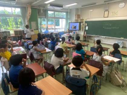 代表委員会が中心となって開校記念の各クラスの動画やクイズなどを準備してきました。各クラスで視聴して、学校の151才のお誕生日を祝いました。