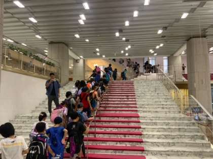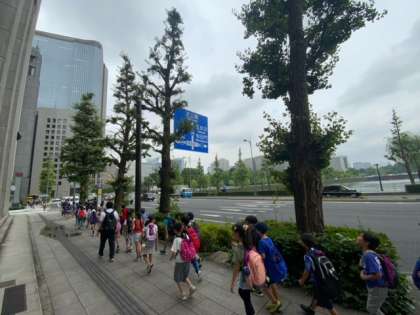 つくし学級、せせらぎ学級を含めた4年生が、日比谷の日生劇場で、「ジャック・オー・ランド〜ユーリと魔物の笛〜」の観劇です。仙川駅から電車に乗って来ました。混雑した電車もマナーよく上手に移動できました。皇居近くも通りました。曇っていて過ごしやすいです。