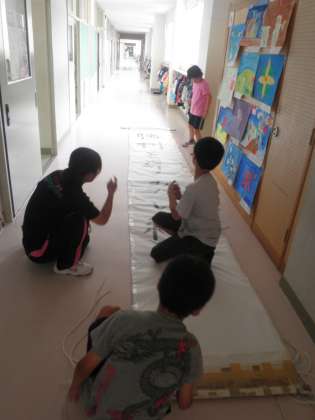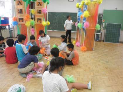 運動委員会は、準備運動の最終練習です。姿勢がとても良くなりました。装飾係は、入退場門の装飾をしています。代表委員会は、スローガンを貼る準備をしています。