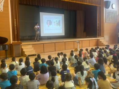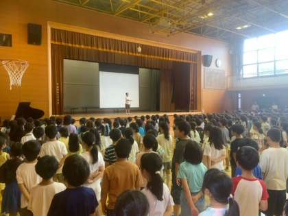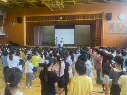一学期の終業式を体育館で行いました。よくお話しを聞くことができています。キャリアパスポートを使って振り返りをすること、長い休みを利用して日頃できないことに取り組むこと、安全に気をつけて、困ったことがあったときには、信頼できる大人に相談することなどを話しました。いい夏休みにしましょう。