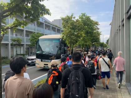 つくし学級の6年生も一緒に6年生は、今日から二泊三日の日光林間学園です。学校での出発式では、落ち着いた行動ができていてさすがです。仙川駅まで歩き、観光バスに乗っていよいよ出発です。