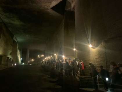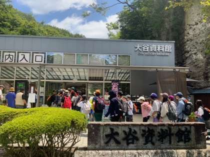 大谷資料館に到着しました。駐車場から大谷石に囲まれています。外はとても暑いですが、中は13℃でとても涼しいです。