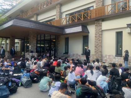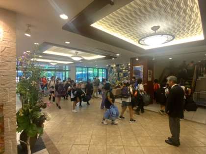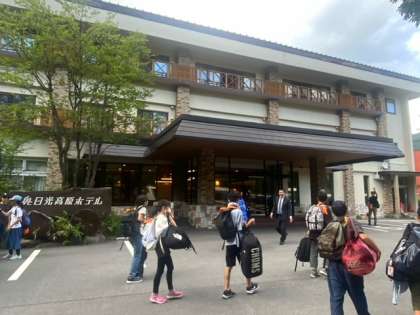 奥日光高原ホテルに到着しました。涼しくて気持ちがいいです。また、硫黄のにおいがします。給田小学校と一緒に泊まります。開園式では、マナーを守って感謝の気持ちを持って行動しましょうとのお話しがありました。