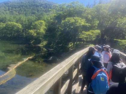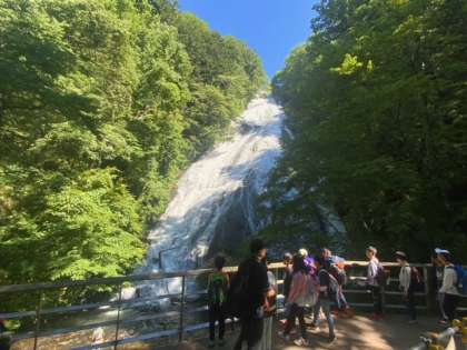 ?ハイキングが開始となりました。湯の湖を半周して、湯滝まで下りて来ました。歩いていてとても気持ちがいいです。