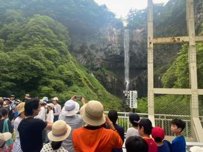 華厳の滝にこちらもバスで来ました。冬に雪が少なかったそうで水量が少なめです。