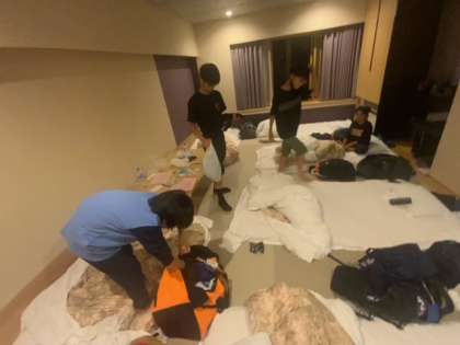 就寝準備です。今日はたくさん歩いて疲れたと思います。明日の日光江戸村に向けて体力を回復させましょう。