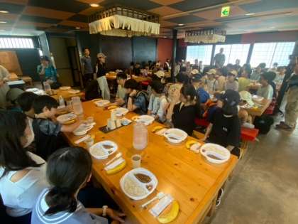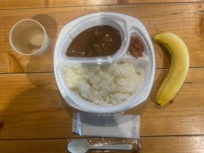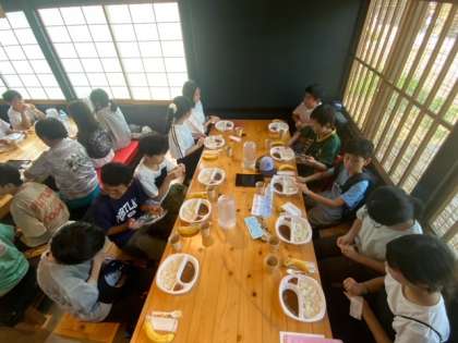 日光江戸村の食事処での昼食です。外は暑いですが、中は涼しいです。カレーライスなのであっという間に食べられました。
