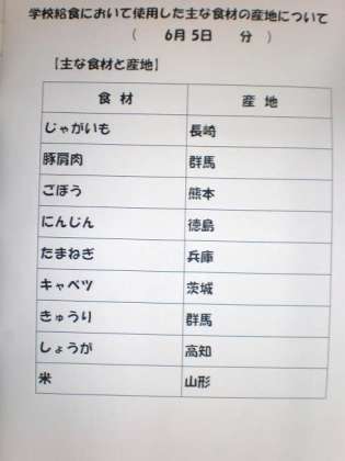 6/5 給食の食材の産地