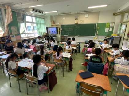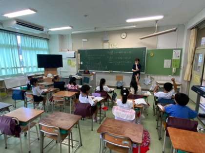 算数少人数で、かっこ(  )を使って、足し算を工夫して計算していきます。問題文を読んで式を立てています。(  )をどうしてそこに付けたのか、他の人の考え方も説明していきます。